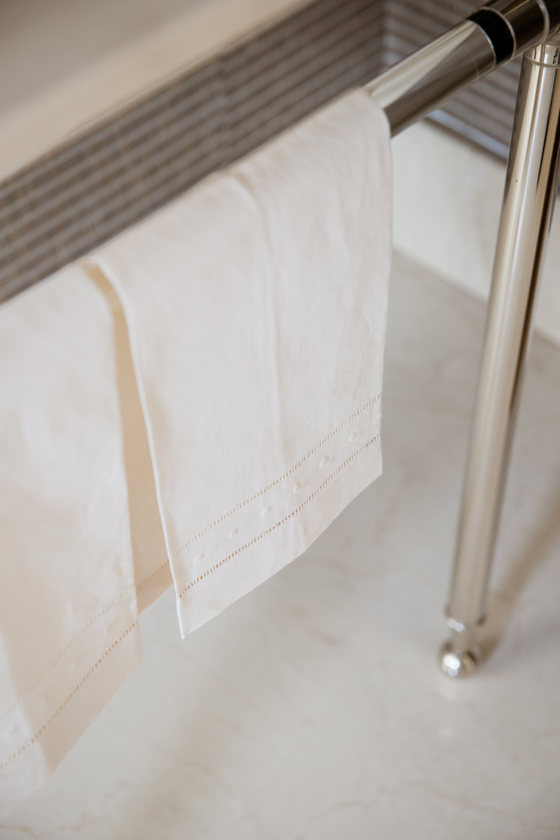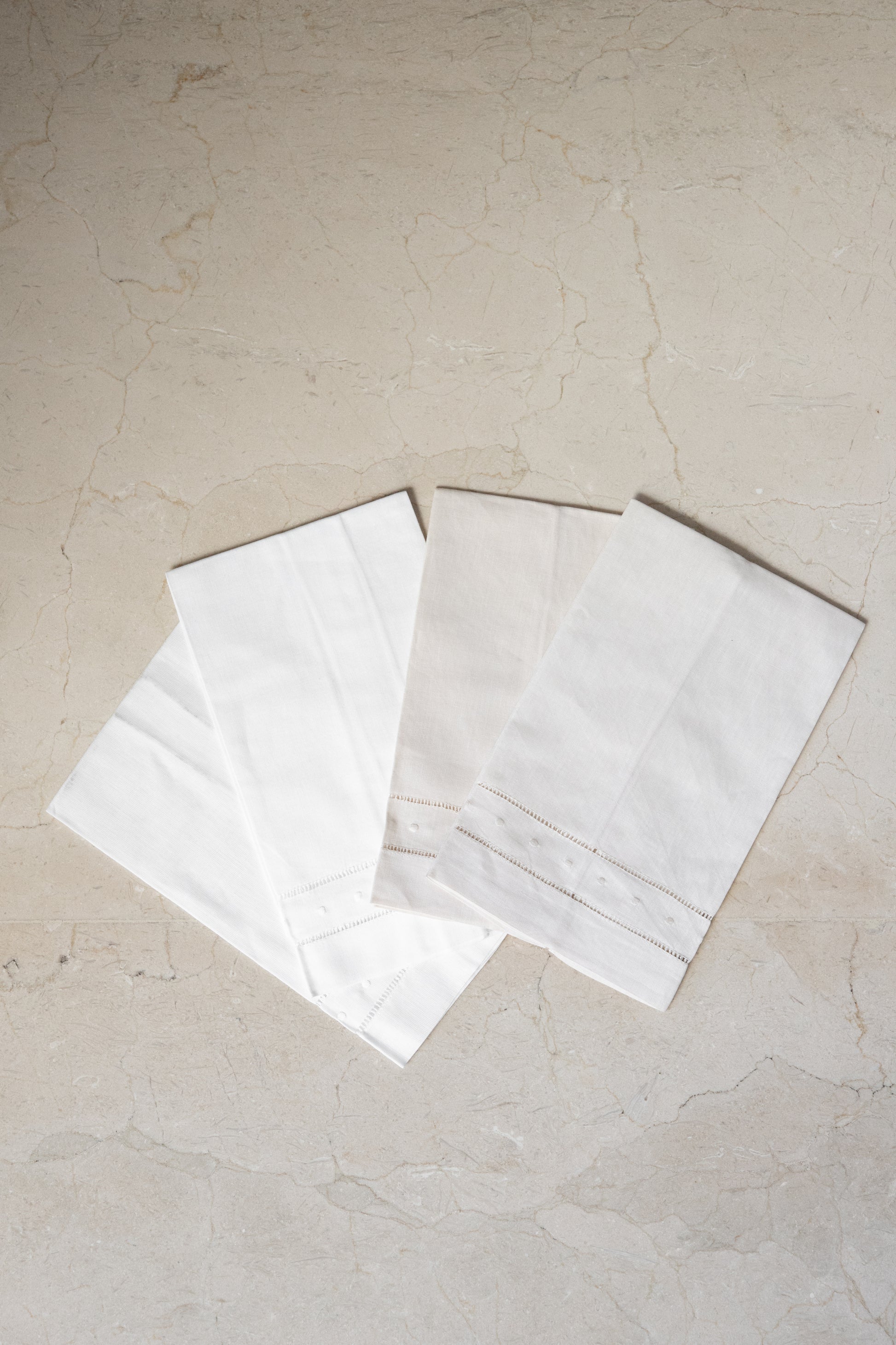 Par de toallas de manos de algodón con detalles en deshilado y bordado.